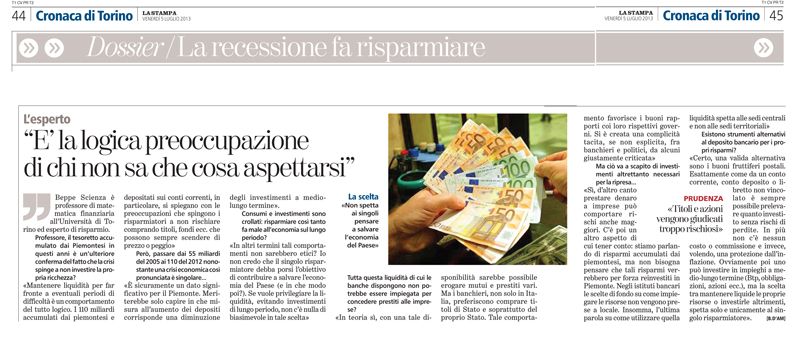 Intervista di Barbara D'Amico a Beppe Scienza su La Stampa di venerdi 5 luglio 2013 pp 44 45
