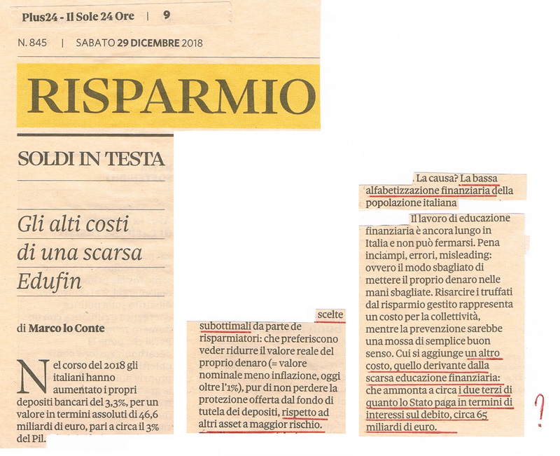 La conferma che la c.d. educazione finanziaria è finalizzata a danneggiare i risparmiatori, cioè a farli smettere di difendersi con il fai-da-te.